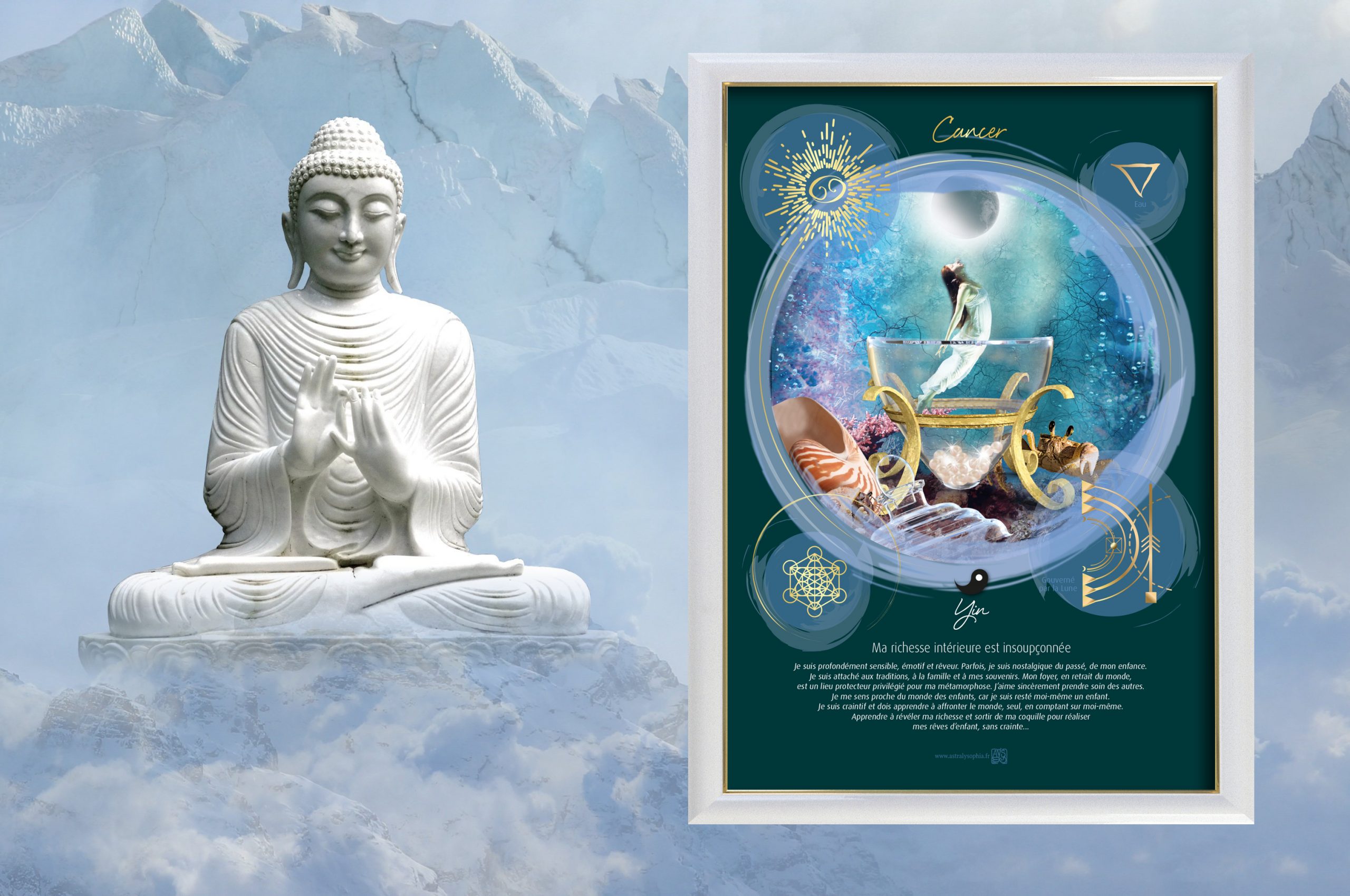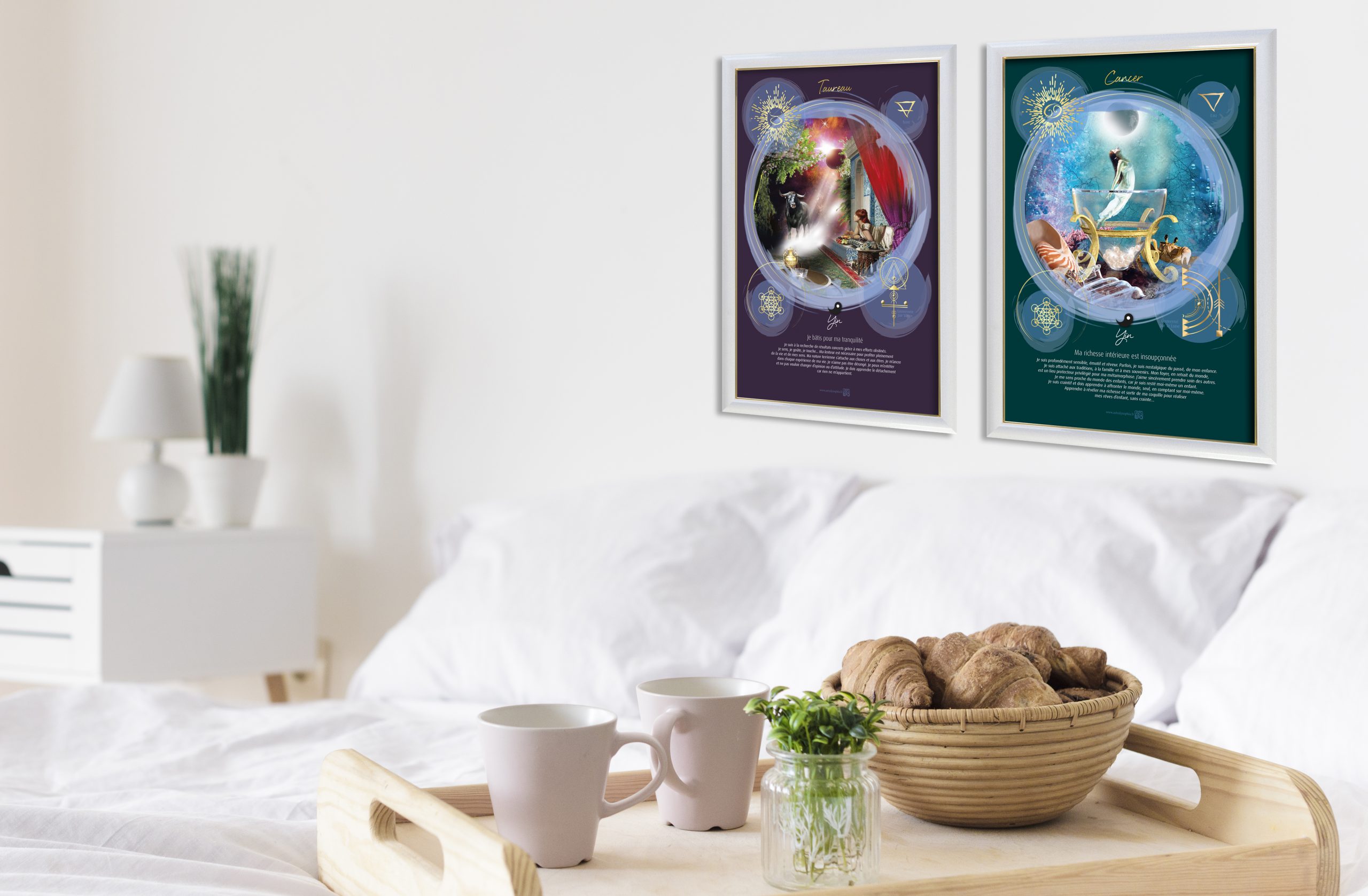 Suite à la création graphique de l’Oracle “Être et Devenir”, je décline les images du zodiaque en affiches au format A3.